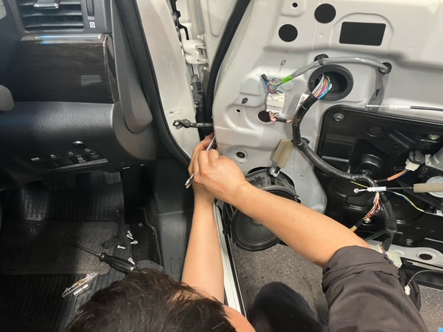 ドアの内張りを外していきます。