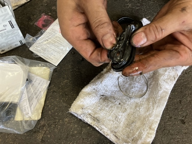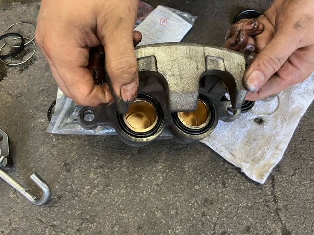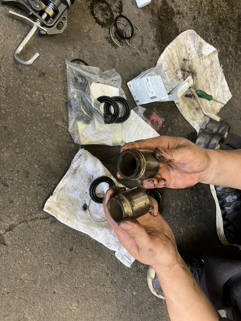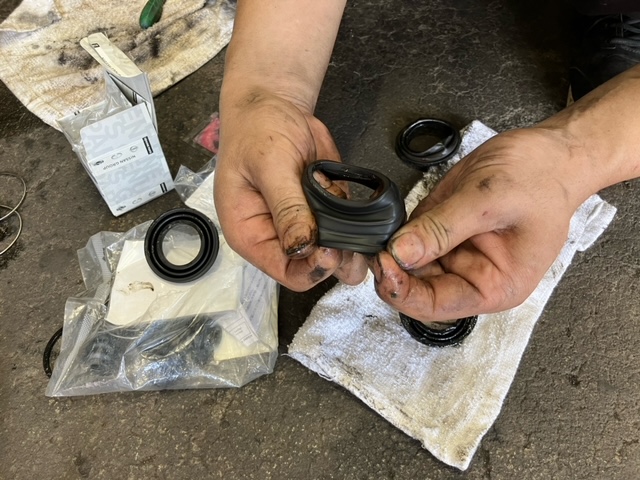 ピストンを保護するダストブーツが破れているのがわかりました。