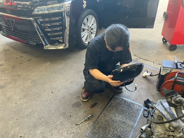 ヒーター付きミラーの取付作業を恐る恐る行う様子をお届けします。