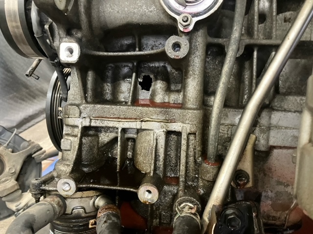 がっつりとエンジンに穴が開いてしまっている状態です(; ・`д・´)驚愕