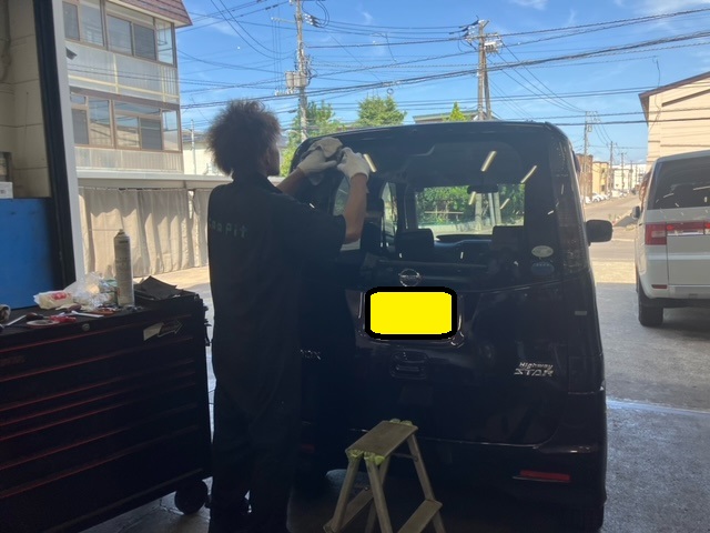 リアガラスが割れてしまって、交換でお預かりです(;´・ω・)大きな怪我がなくて良かったです