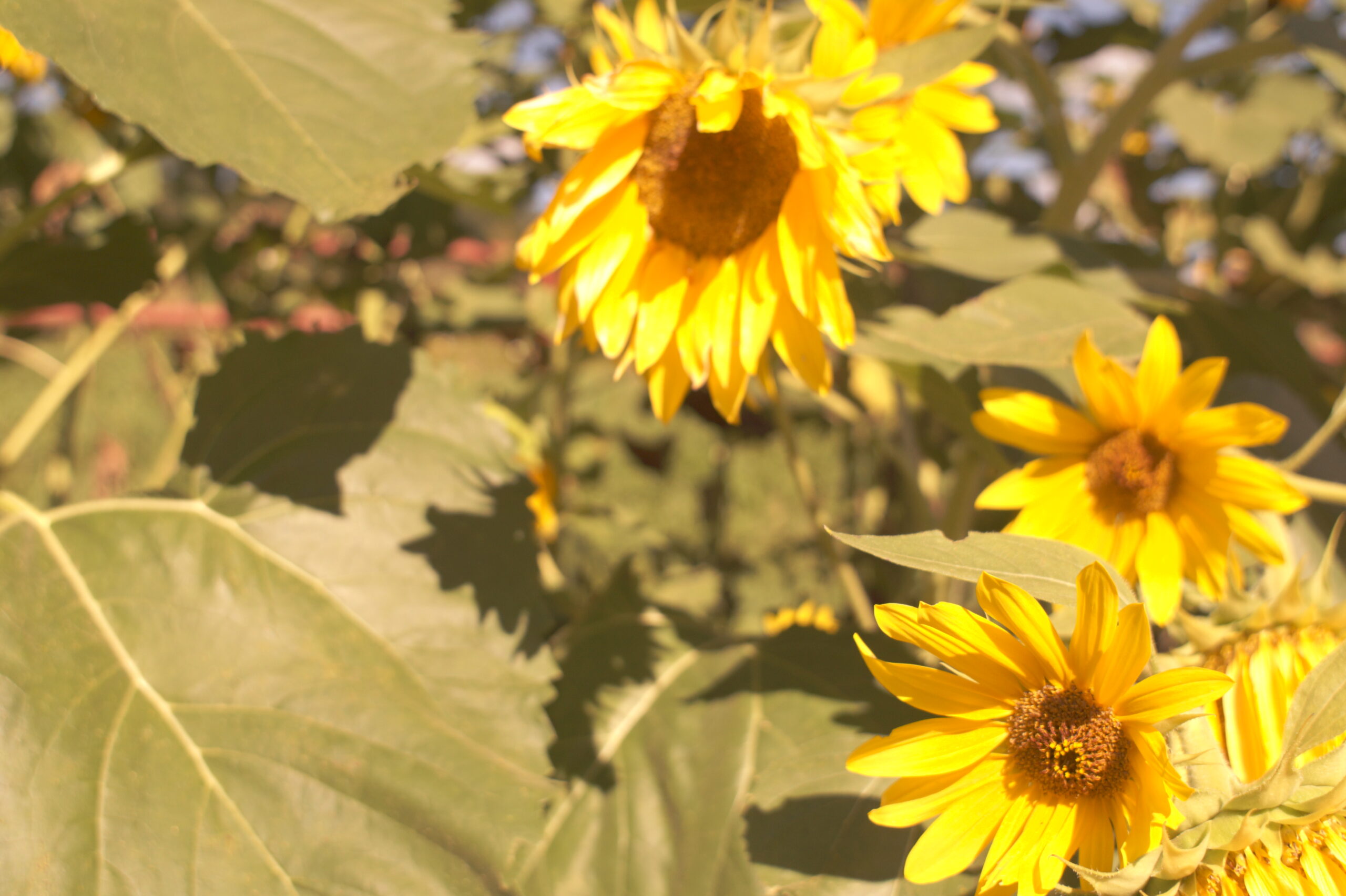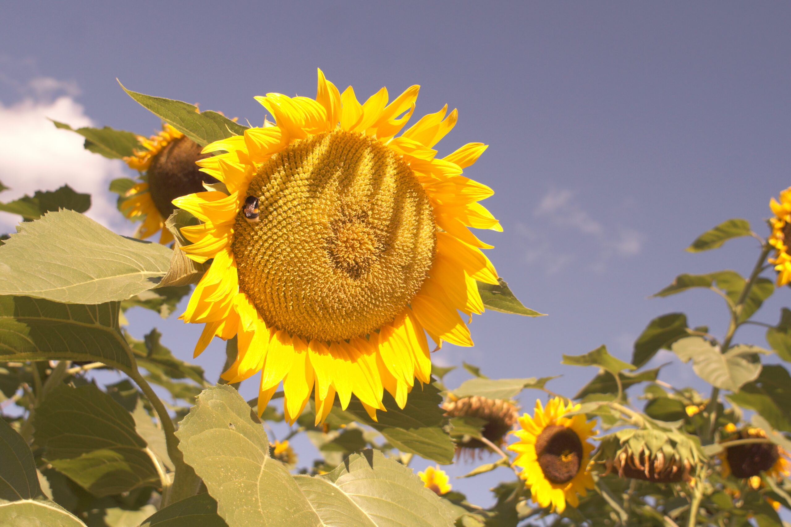 この3枚目の写真のヒマワリに、みつばちがとまっているのがポイントです(。-`ω-)