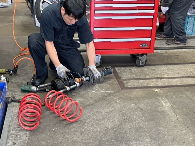 オイル交換と一緒に、純正サスにお戻しのご依頼をいただきました(*’ω’*)