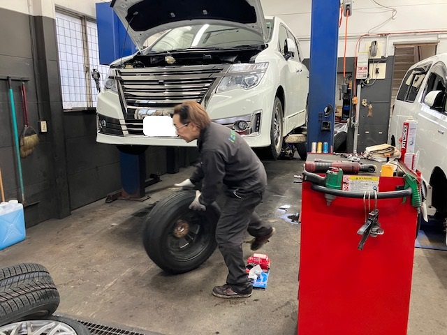 仮で履かせていた冬タイヤは外して、作業スタートです!