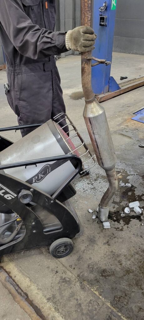マフラー内に雪が入り込んだのか、内部で凍ってしまってSOS入庫