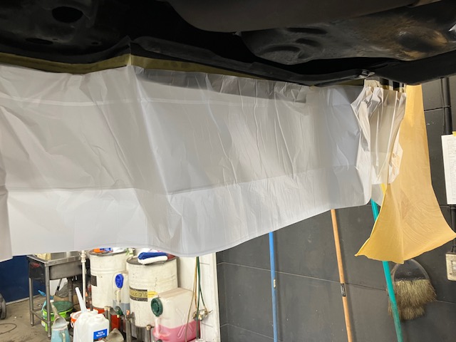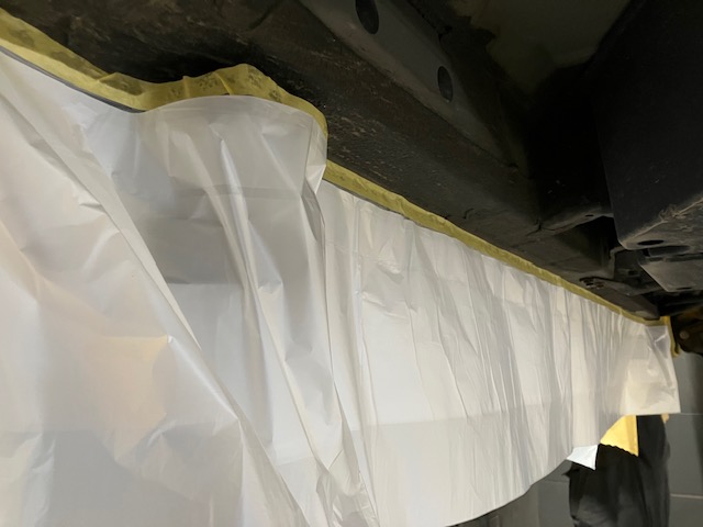 アンダーカバーは塗らないので内側にビニールを貼ってい行きます