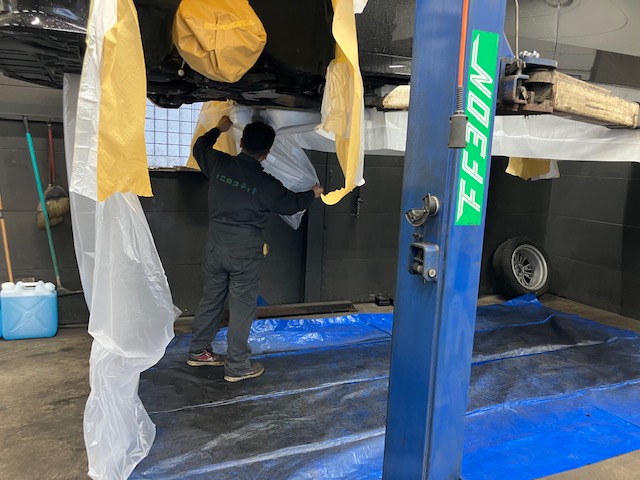 社外のサスや車高調、ブレーキ関連は丁寧に養生