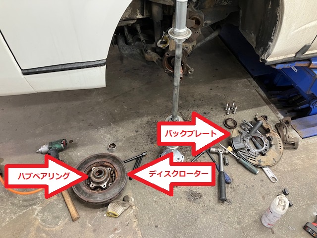 フロント左右のハブ・ディスクローター・バックプレートの交換で