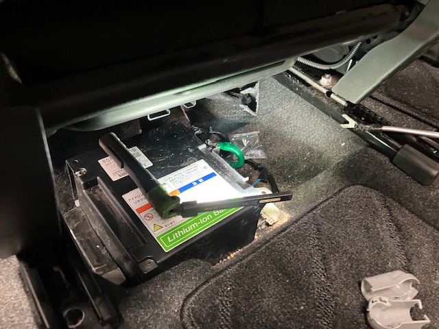 助手席下のアイドリング用バッテリーも外したり