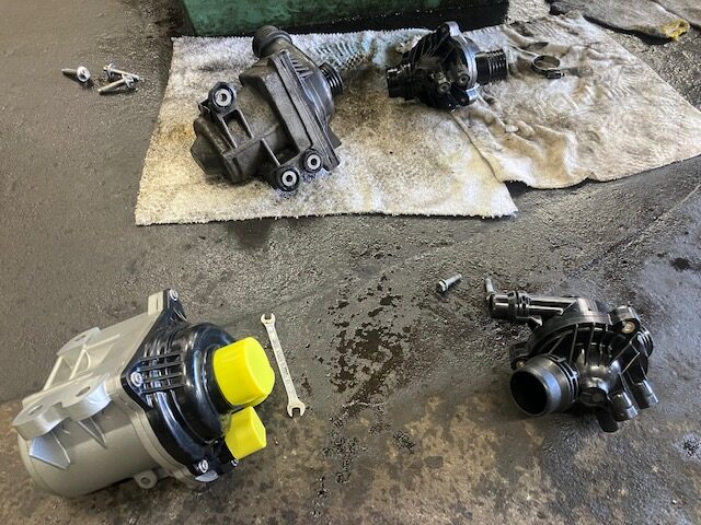 オーバーヒート警告灯が点灯したとの事で、電動ウォーターポンプ等お持ち込みで修理です!