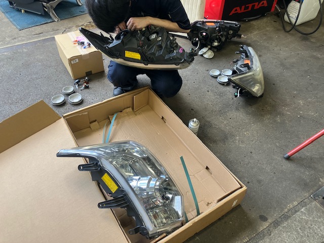 小松田が作業していたヘッドライトレンズのバルブ交換でした。