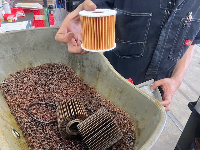 2回に一回程度オイルエレメント(オイルフィルター)の交換をお勧めしています。