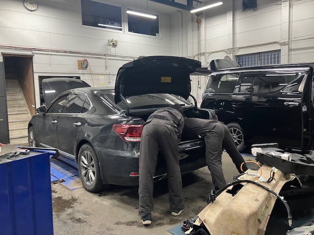HVサプライバッテリー交換作業中のLS600S