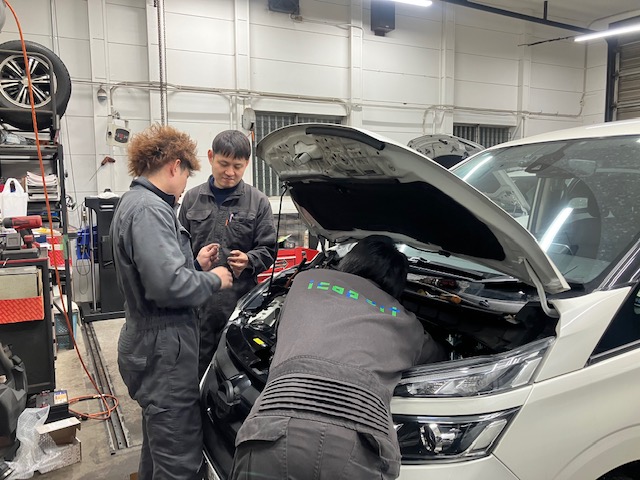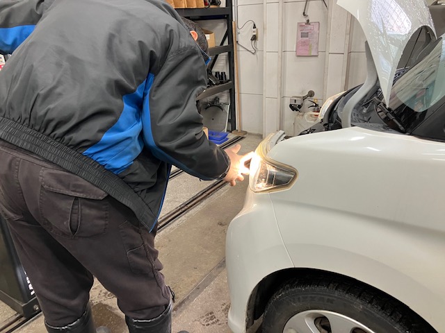 ヘッドライトの光軸調整など、検査場へ行く準備中です