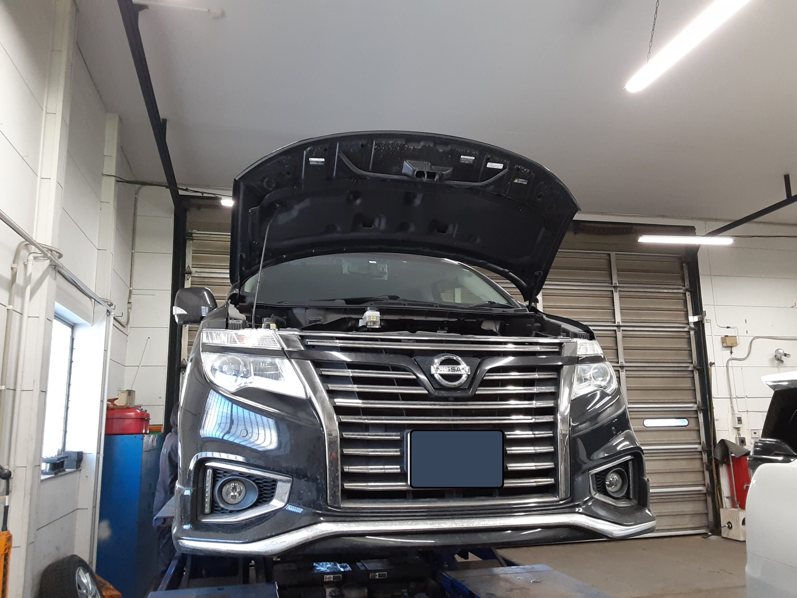まずは、メンテナンスパック車検でお預かりのT様 エルグランド(H29年式:TNE52)