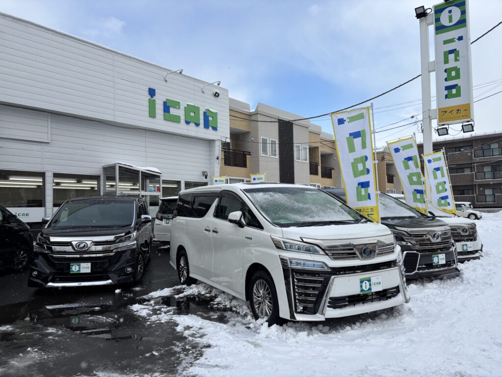 おはようございますアイカーでございます。✧*。   連日天気の良い日が続いておりましたが、本日はかなり降ってしまいましたね(;^ω^) しかも夕方からもっと降る予報が・・・。 車の雪下ろしや敷地内の雪かきで腰が悲鳴を上げています(;´Д`)   皆様、路面状況も悪くなりますので安全運転を心がけましょう!!   さて、続々と新しいお車が入庫しております!! 気になる方は是非、ご来店、お問い合わせお待ちしております!!   では 本日もよろしくお願いいたします!!