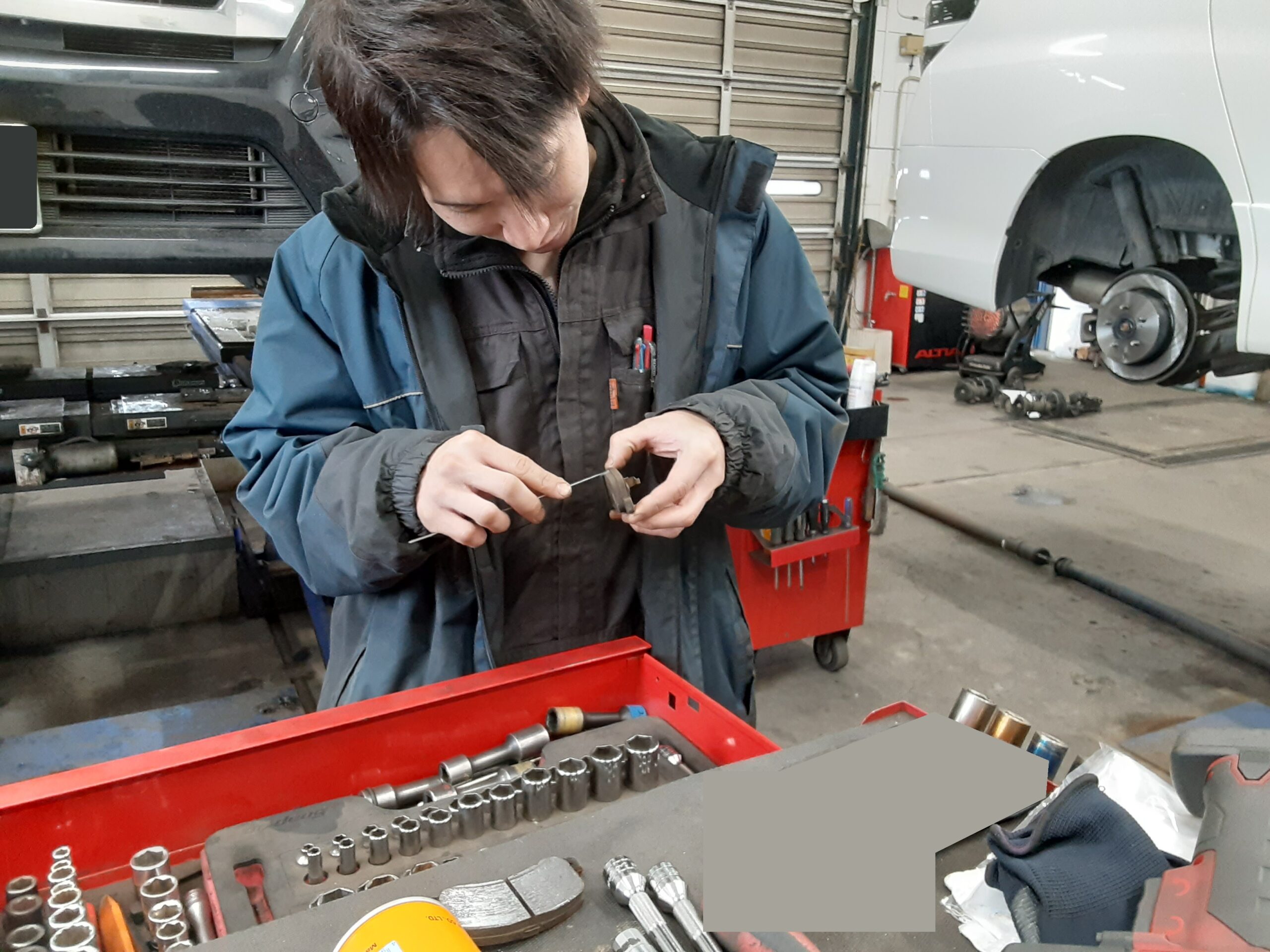 ローターの状態など、迷ったときは兄のアドバイスを聞きながら作業を進めます