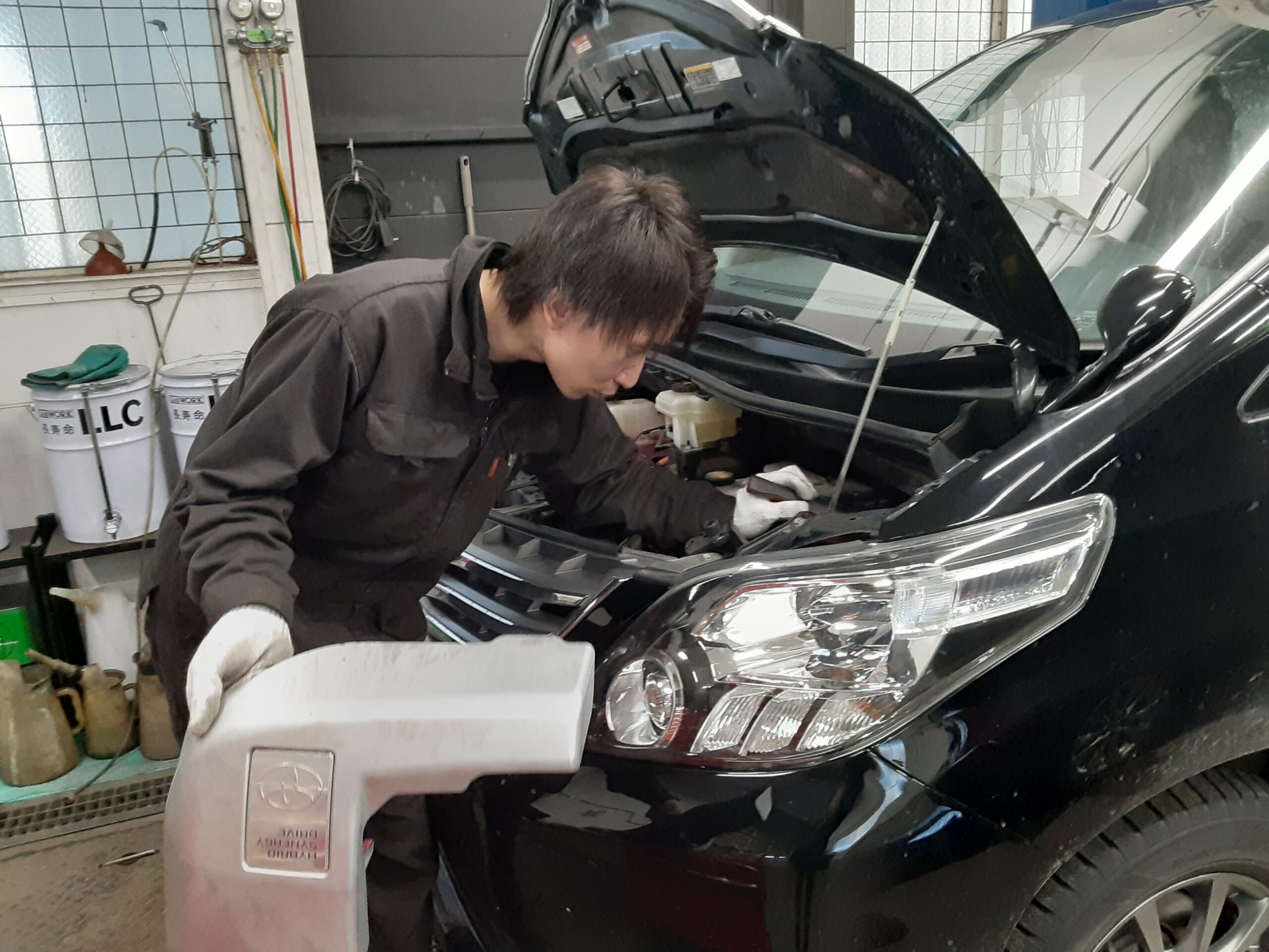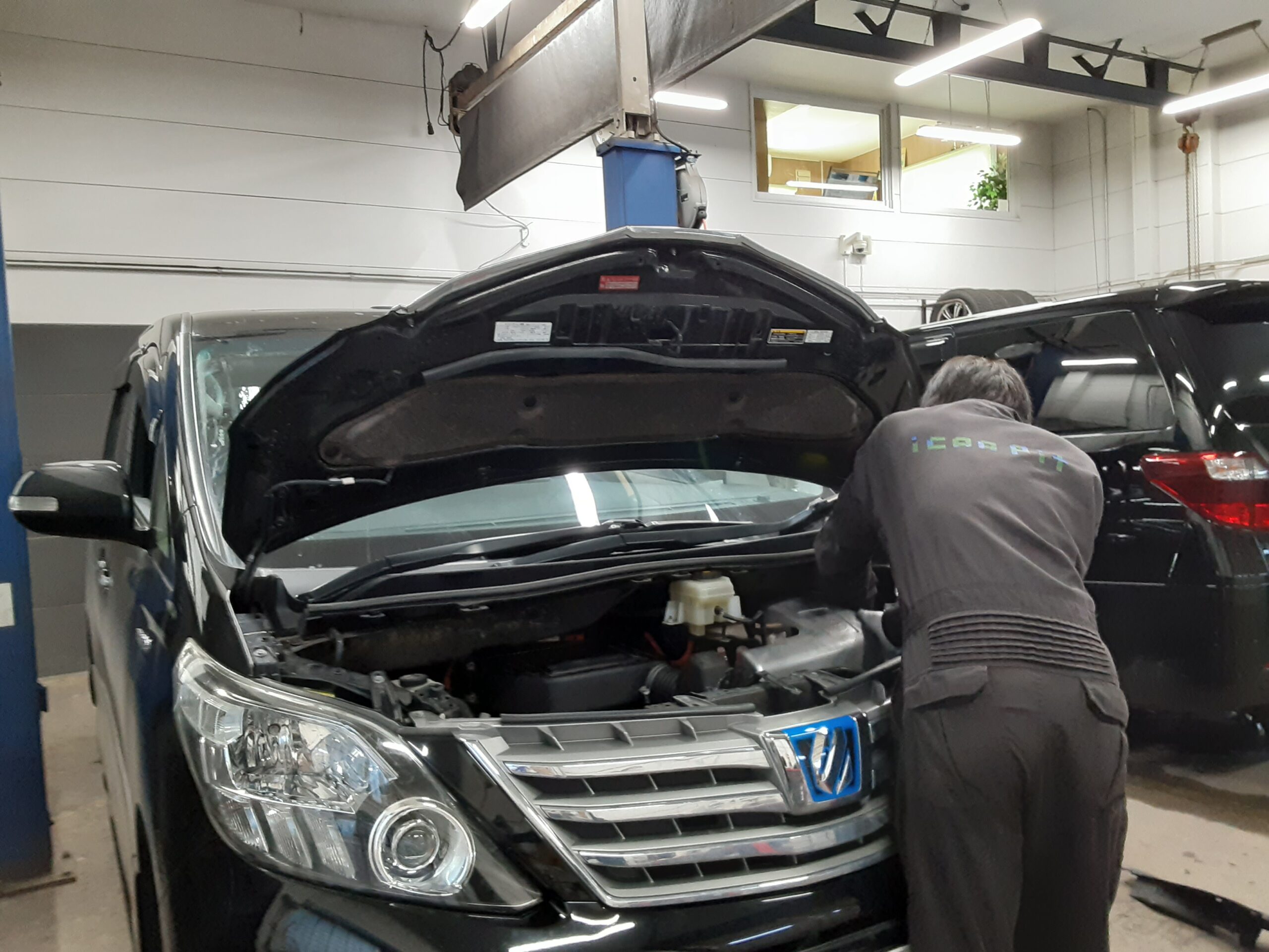 まずは、車検でお預かり中のK様 アルファードHV(H26年式:ATH20W)