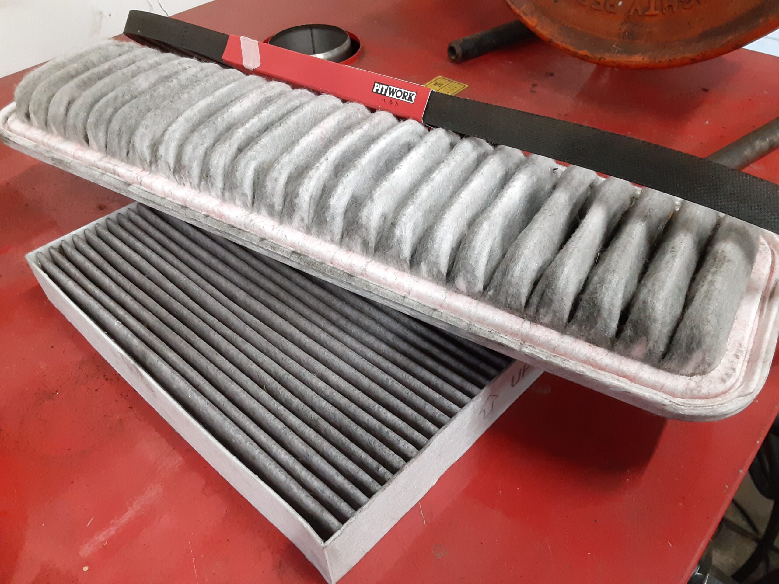 交換時期だったファンベルト、エアコンフィルターと