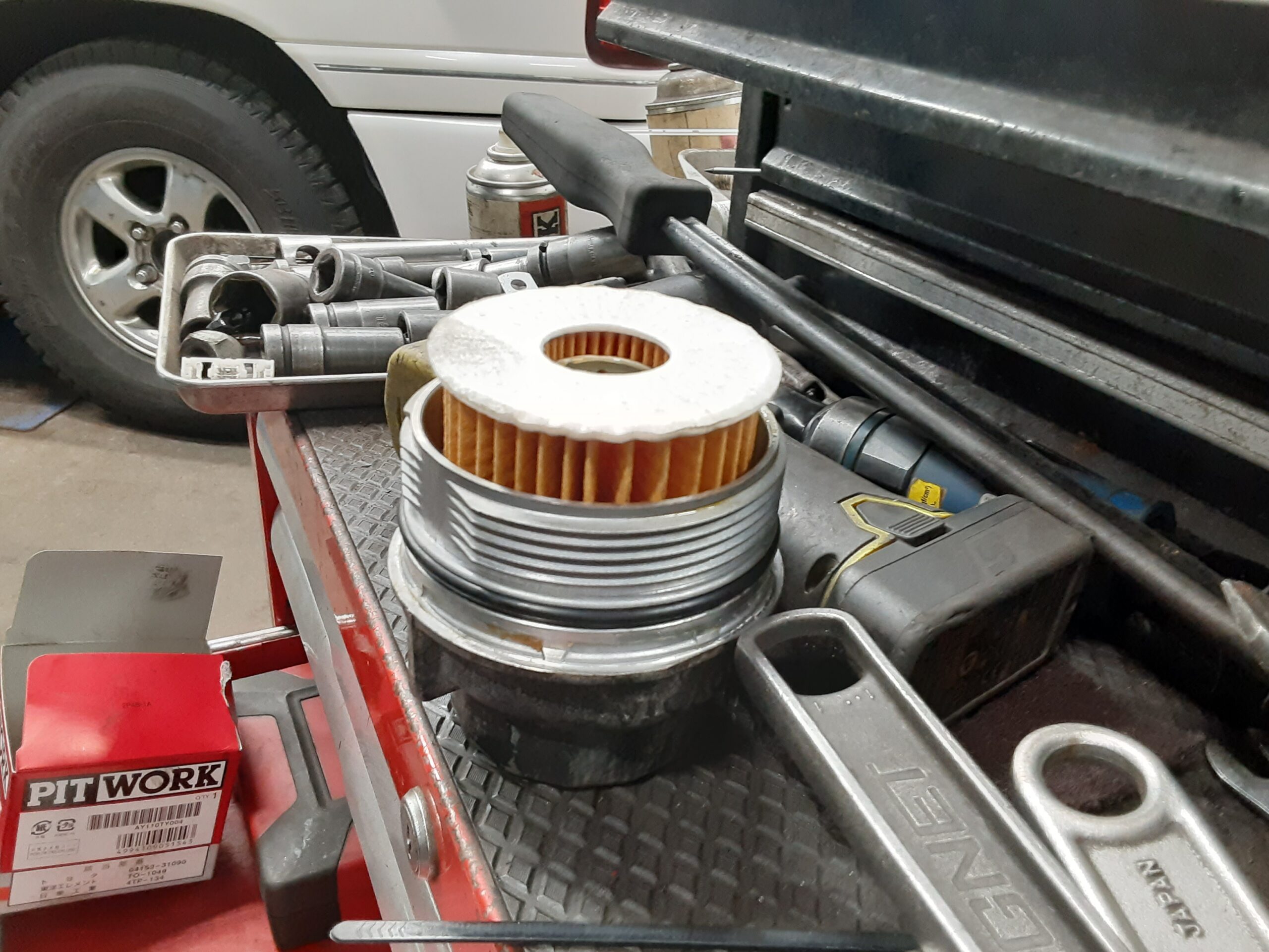 サービスのオイルとオイルエレメントの交換をしつつ見積り点検を行いました