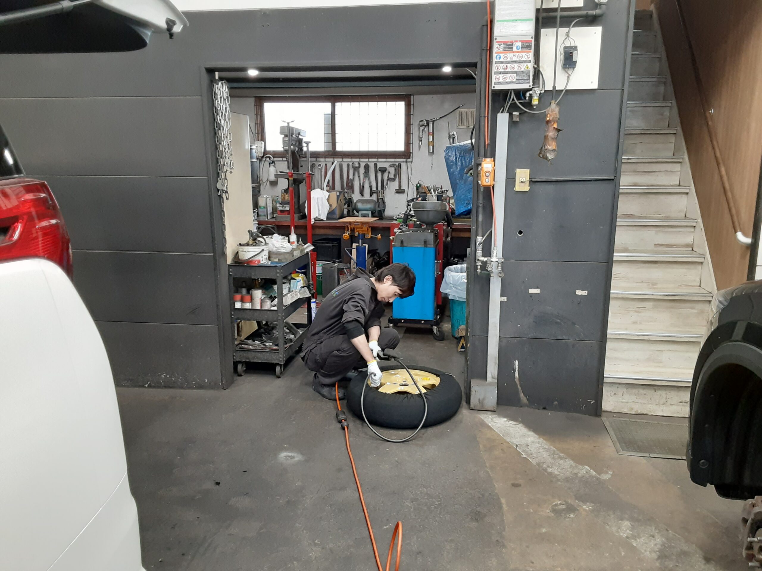 最後はスペアタイヤの空気圧の点検をして