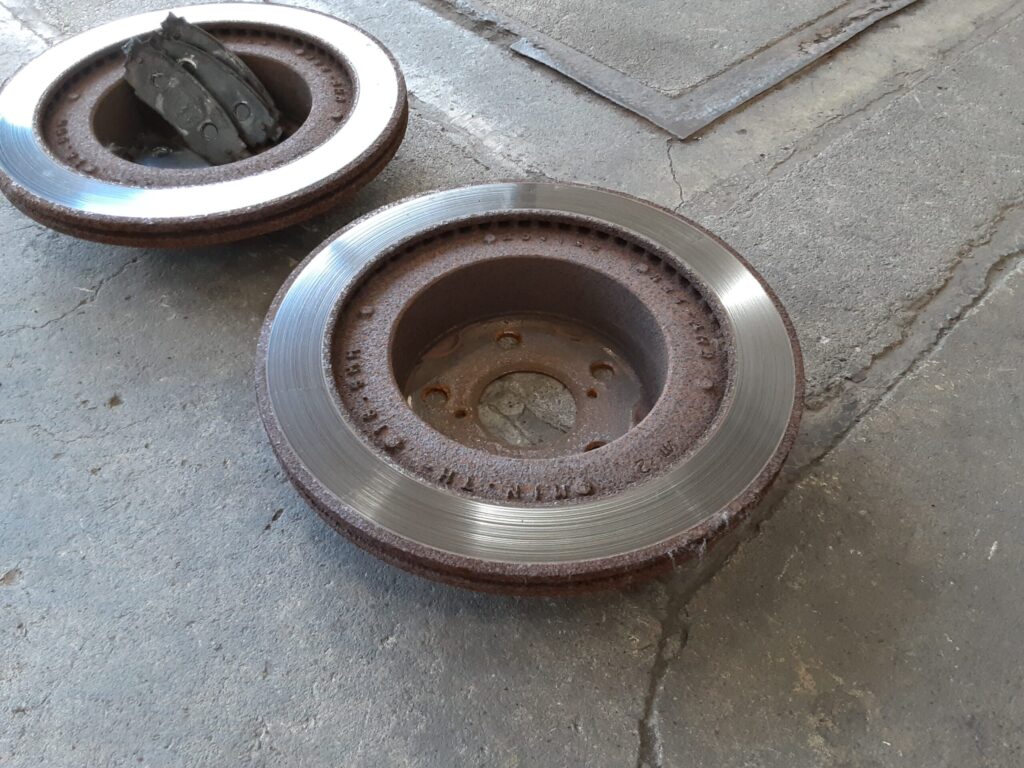 錆が目立っていた前後のブレーキローターと残量があまりなかったリアのブレーキパッドの交換