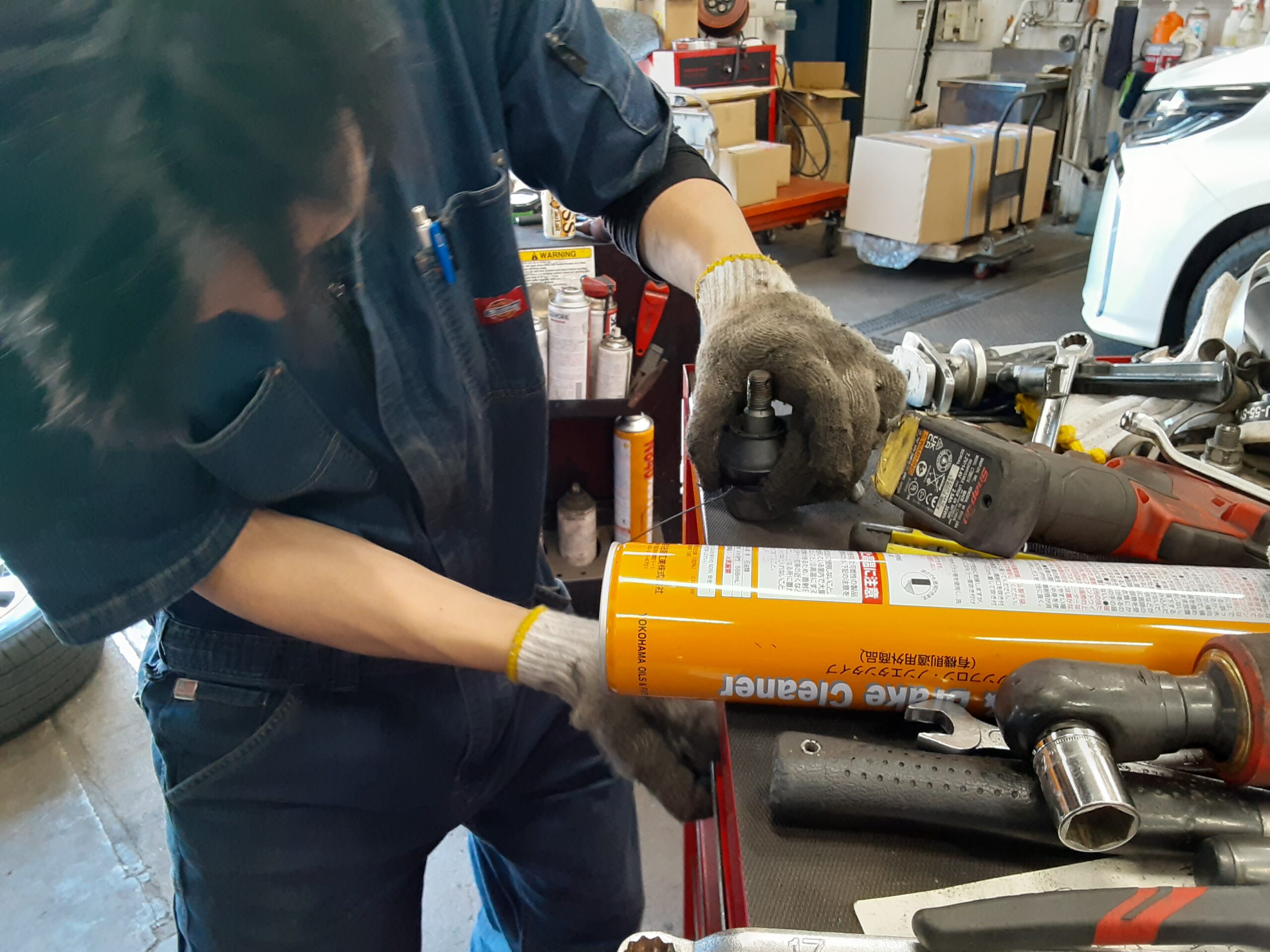 ブーツ切れで車検NGの為、ロアーボールジョイントブーツとスタビリンクを交換しました