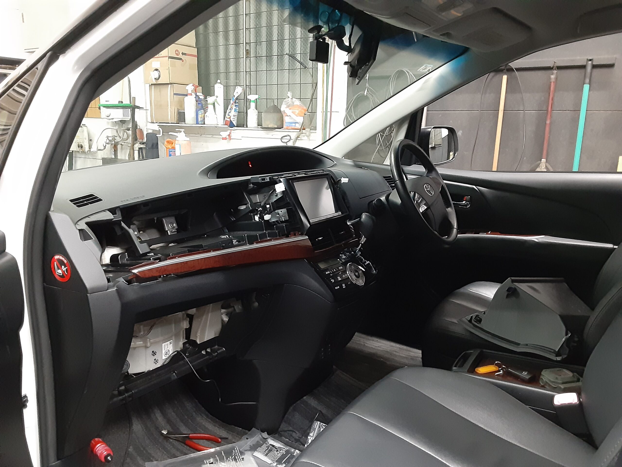 エスティマのエンスタ取付は、ごそっと取り外しながら行う形です