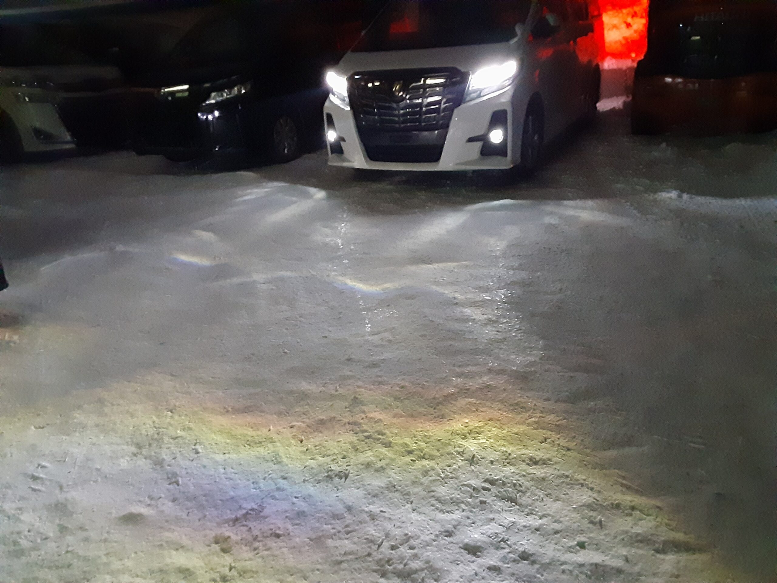 先日、入庫したお車のライトで虹が出来たので記念に撮りました!