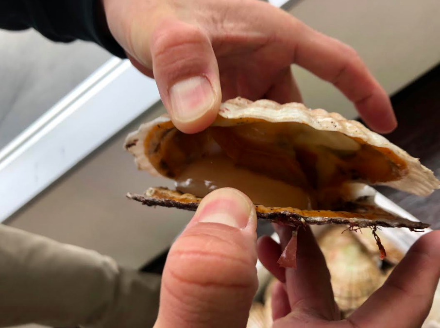 「昨日 獲ったホタテだから生でいけるよ!」とS様