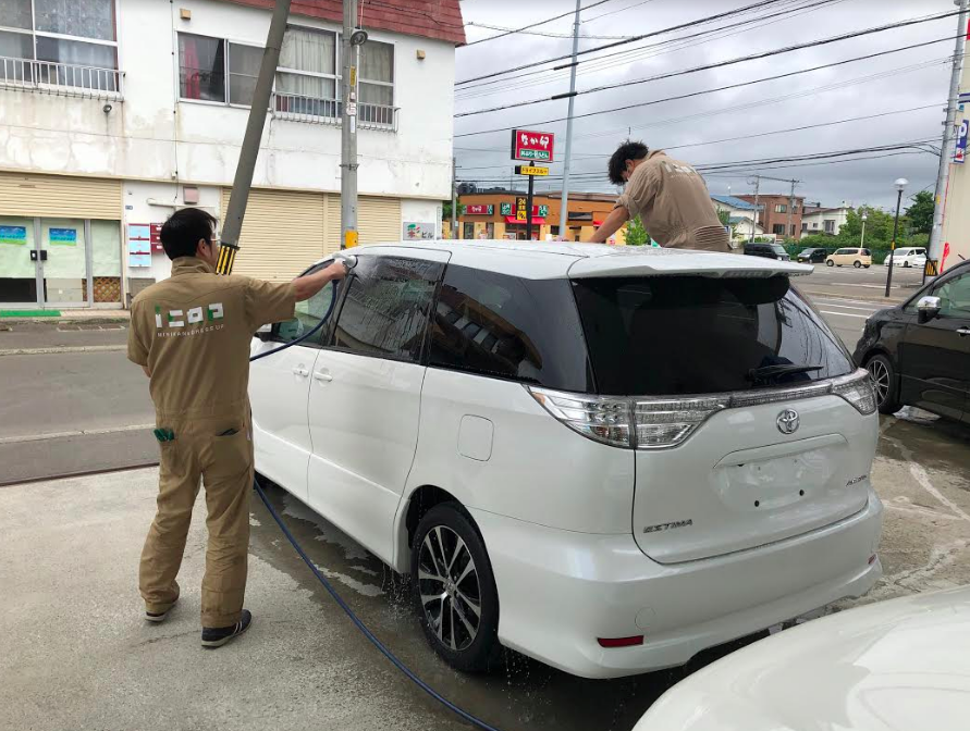 本日のスタートは 商品車の洗車から