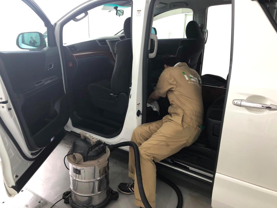 室内のマットも外し 業務用のバキュームで徹底的に室内のゴミを吸い上げていきます。