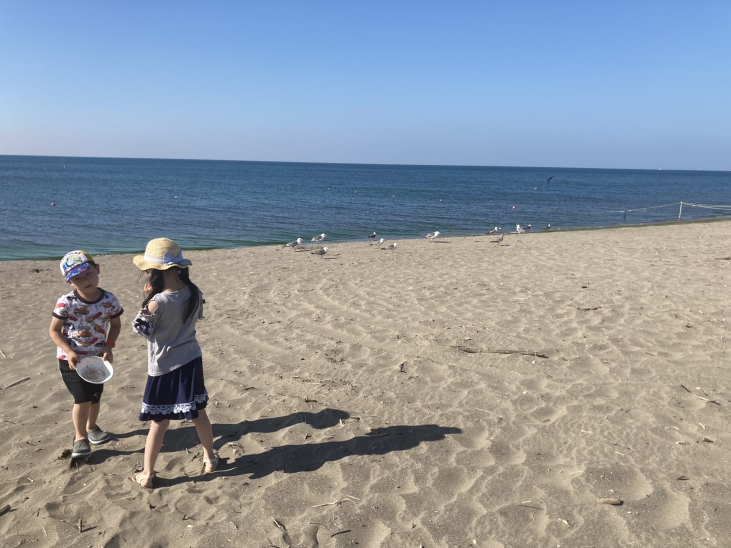 カモメも人に慣れているのか、すんなり子供達に餌付けされています。