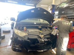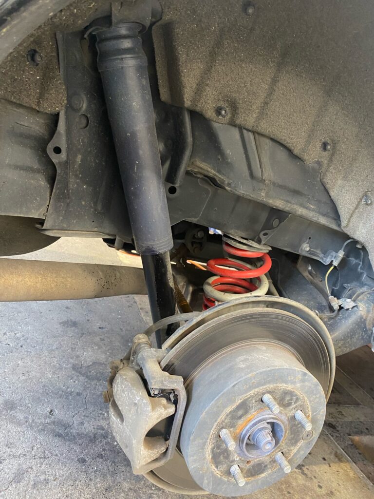 走行中の車のロール(横揺れ)を減少させるスタビリンクという部品やリアショック等の交換を行います!