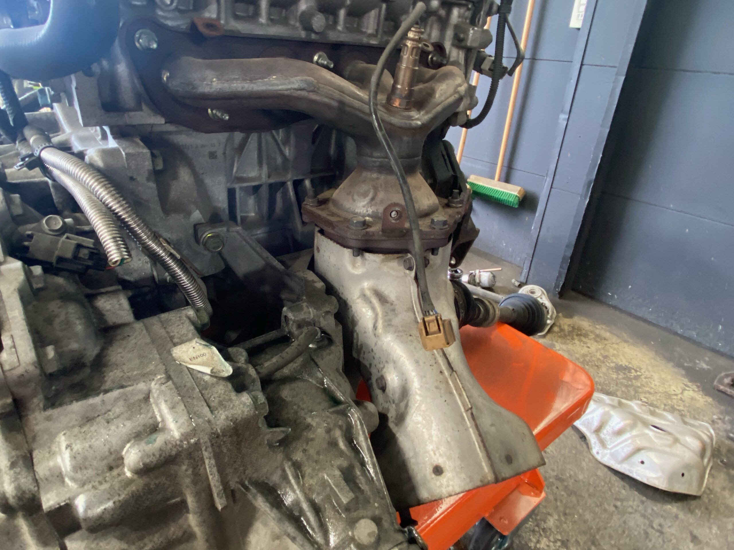 この触媒をエンジンに組み付けて、エンジンを車体に戻します。