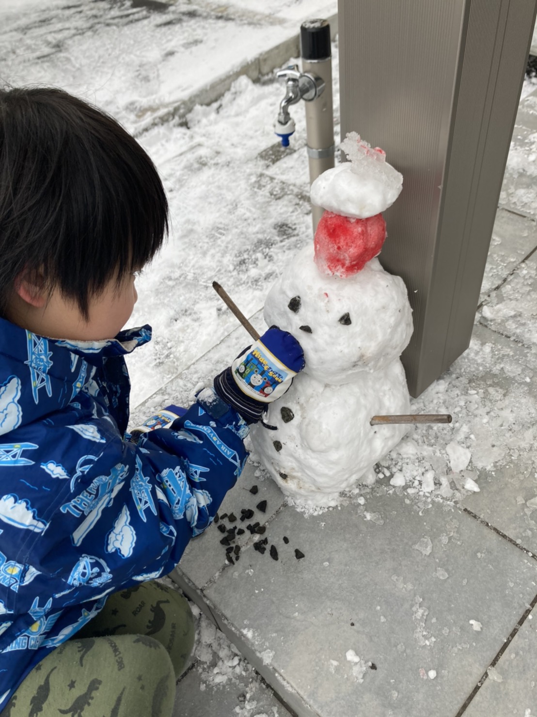 冬の終わり頃には立派な雪だるまが我が家に出来ているはずです。