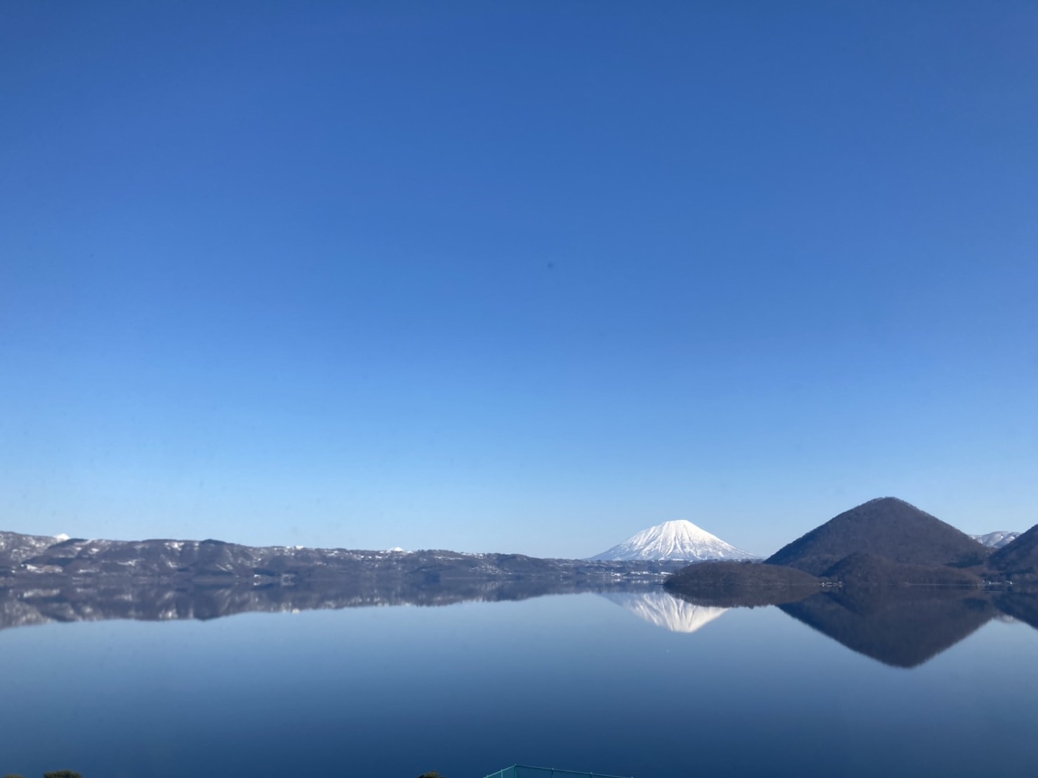 雲一つ無い透きとおる青空と鏡のような湖