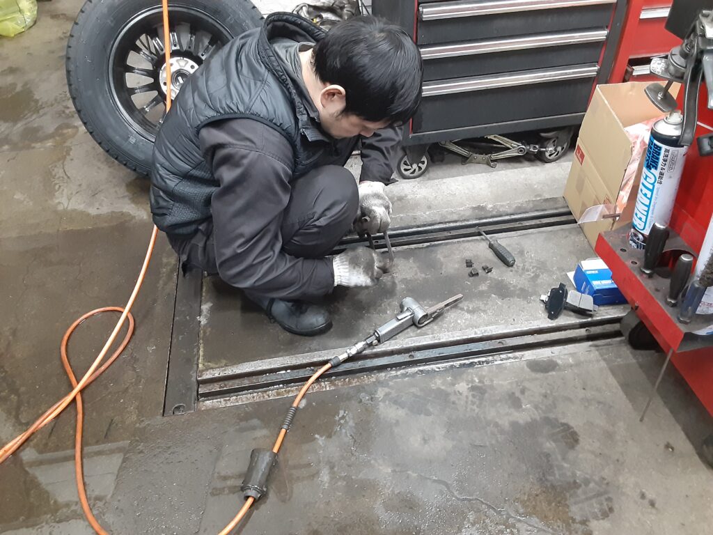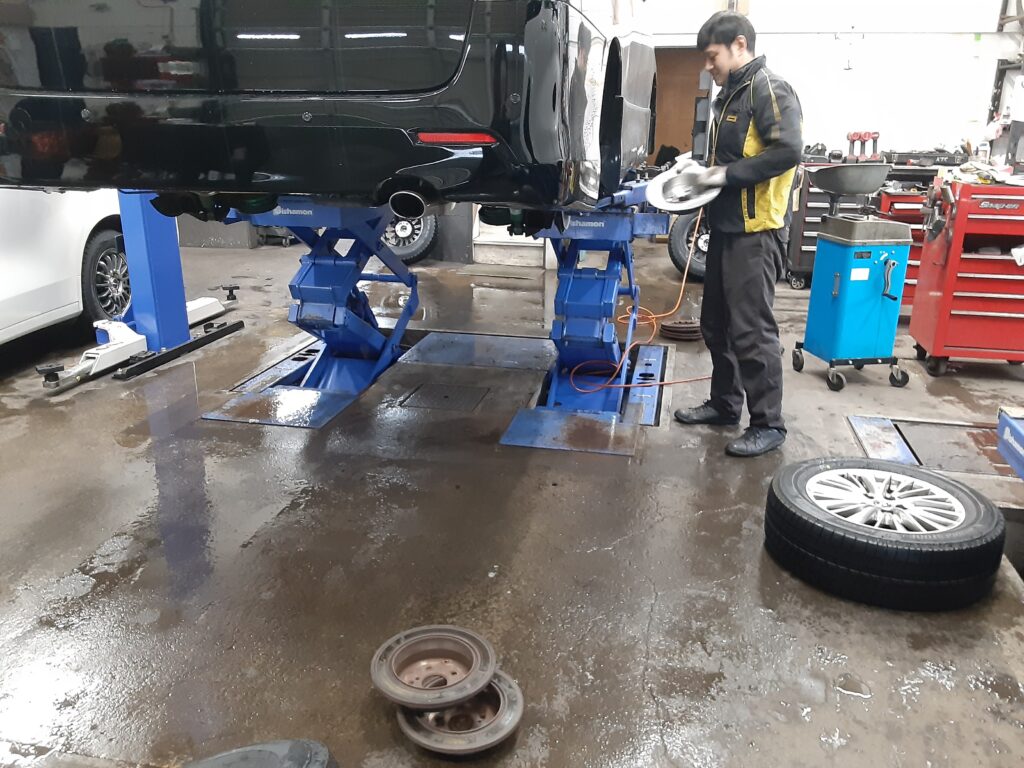ブレーキ清掃など、入庫後の作業をしながら部品の発注をしていきました