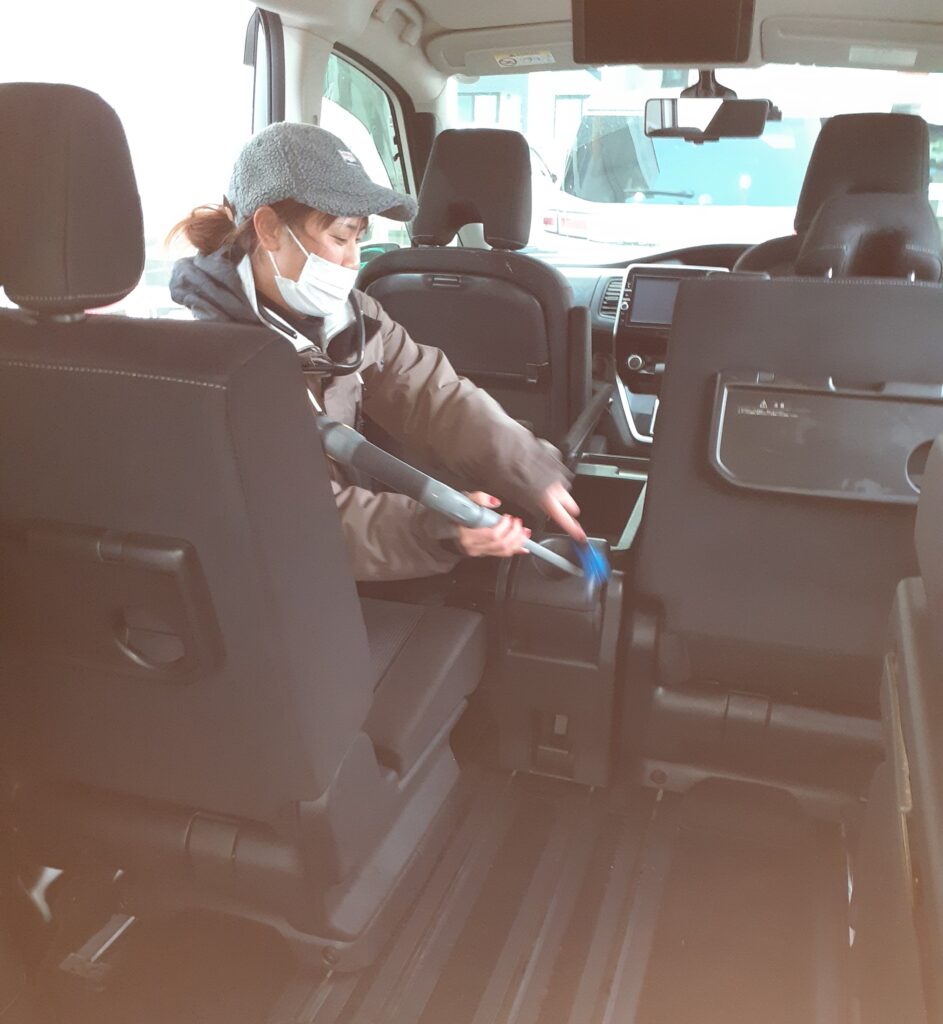 ご紹介いたします。隅々までブラシでホコリ等もかき出しながら業務用掃除機で吸っております✨