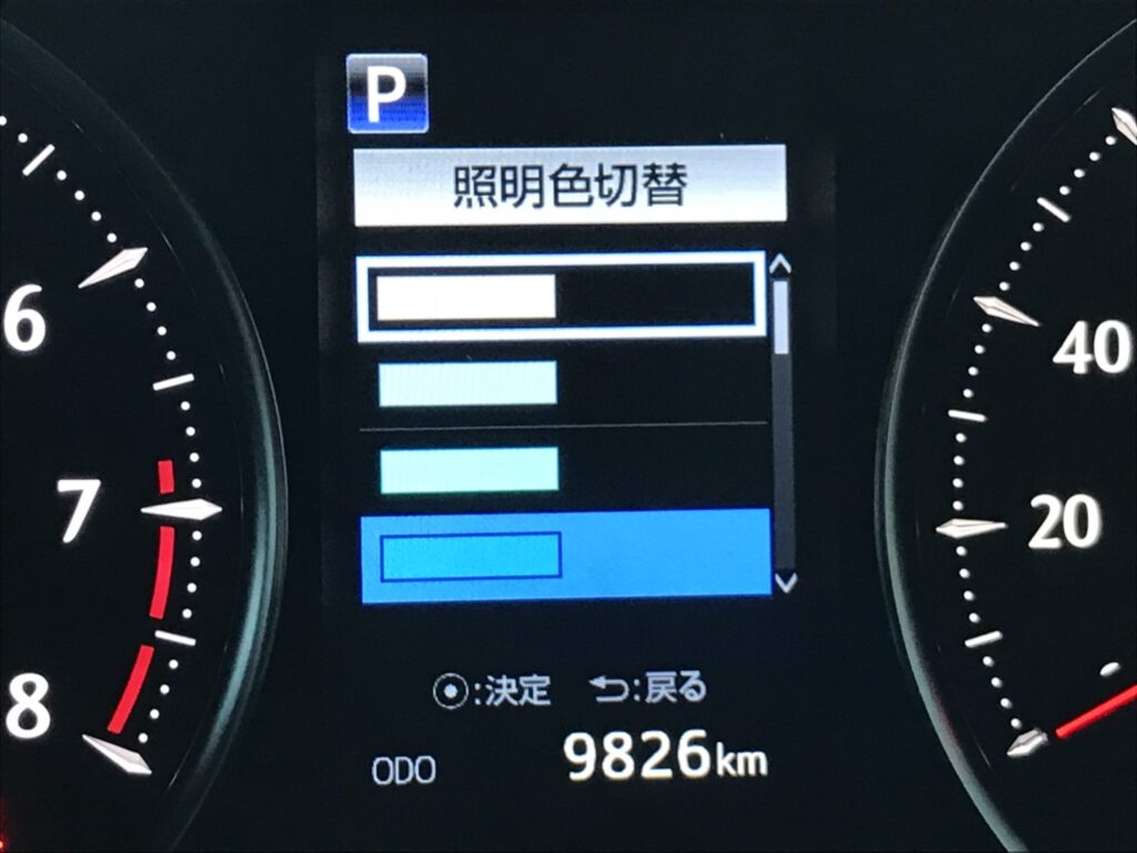 ちなみにアルパインのモニターも天井照明に合わせて配色の変更が可能です。まぁ面倒なので使いませんがね・・ (๑•́ω•̀)