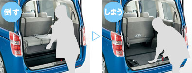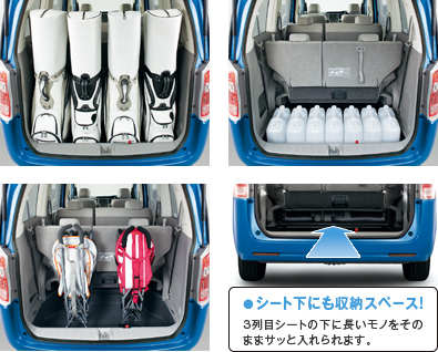 当時クラス初の機能として誕生し、3列目シートを床下に収納でき、床が完全にフラット化できる機能です。