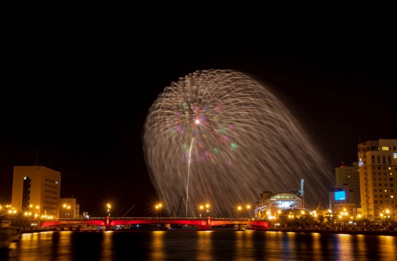 釧路大漁どんぱく花火大会では、三尺玉をはじめとする約10,000発の花火が釧路川河口付近から打ち上げられます。