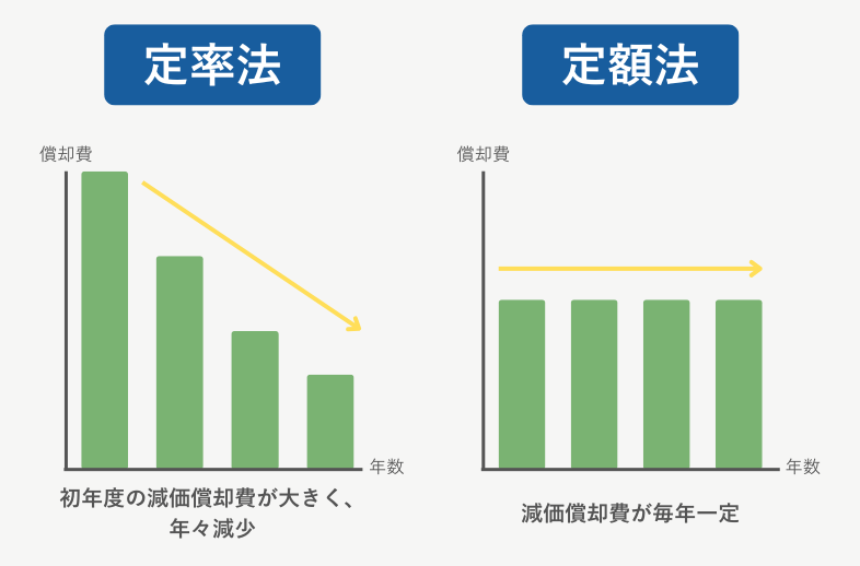 また、固定資産を減価償却する際の計算方法は「定額法」と「定率法」のいずれかが適用されます。