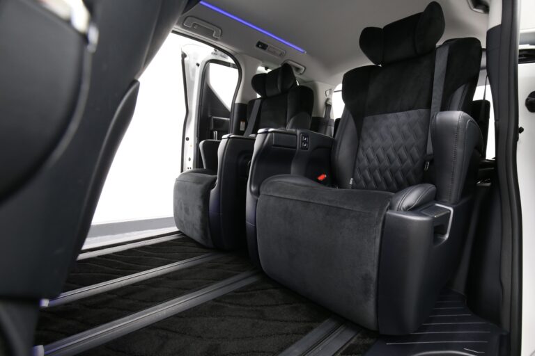 最上級グレードのエグゼクティブラウンジは専用の上質なシート素材(ナッパレザー)、電動リクライニングやベンチレーション機能付きのエグゼクティブシート(2列目)が装備されています。