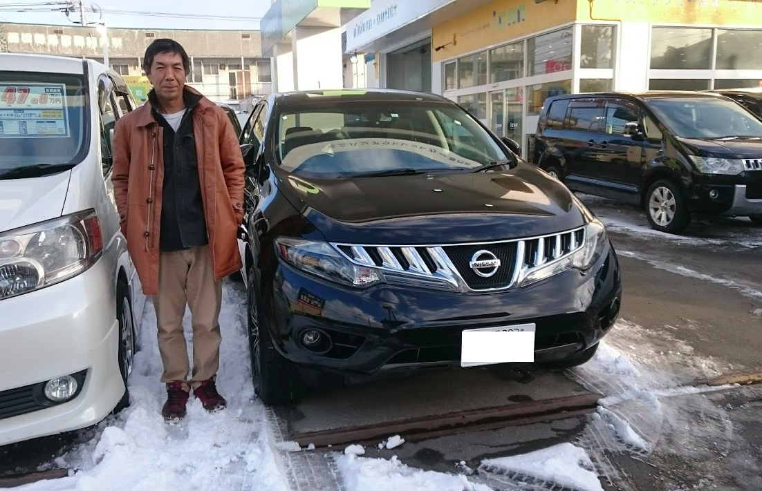 北区 K様 ニッサン ムラーノ この度は、数ある中古車販売店の中 から当店を選んでいただき誠に ありがとうございます。 一目惚れのムラーノさん ピカピカに仕上がっております。 あいにくの雪で20インチのAWは 取付できませんでした。 ぜひ近いうちに履いた姿を お見せ下さい。 また、何かの際には気軽に ご連絡ください。 よろしくお願いいたします! ありがとうございました!