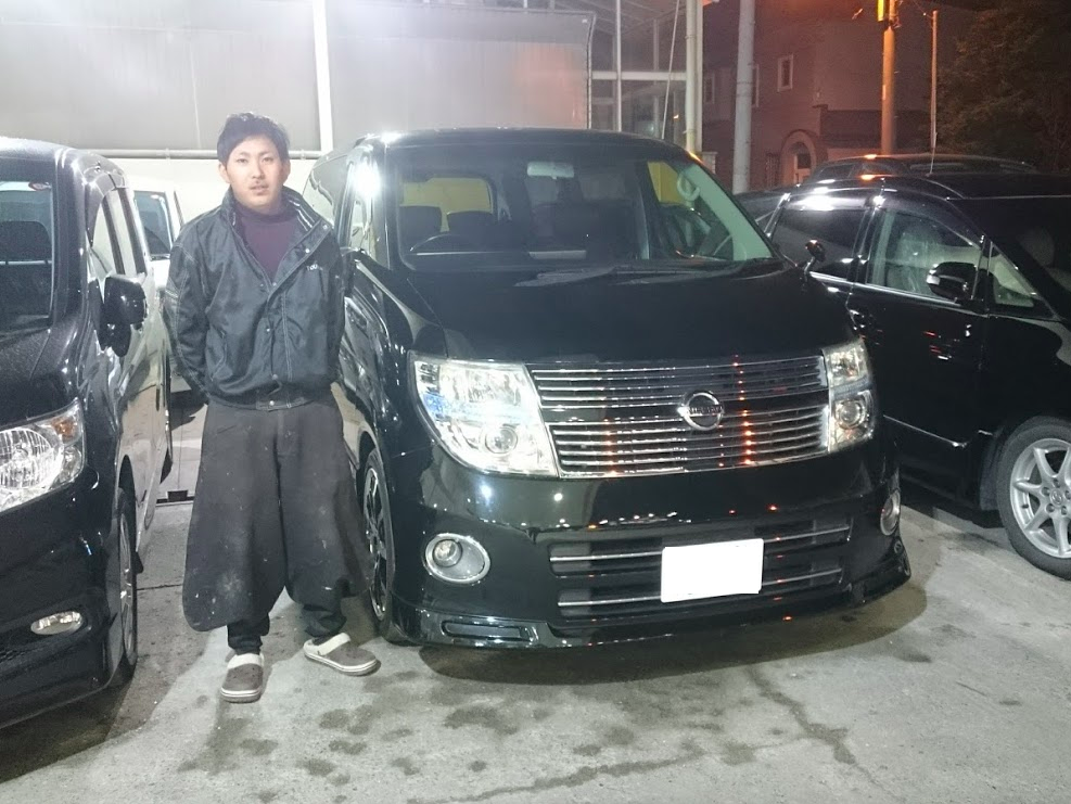 北区 K様 エルグランド ハイウェイスター この度は、数ある中古車販売店の中 から当店を選んでいただき誠に ありがとうございます。 希少な最終型 のエルグランド ブラックレザー&純正HDD 大事にしてあげて下さい。 また、何かの際には気軽に ご連絡ください。 よろしくお願いいたします! ありがとうございました!
