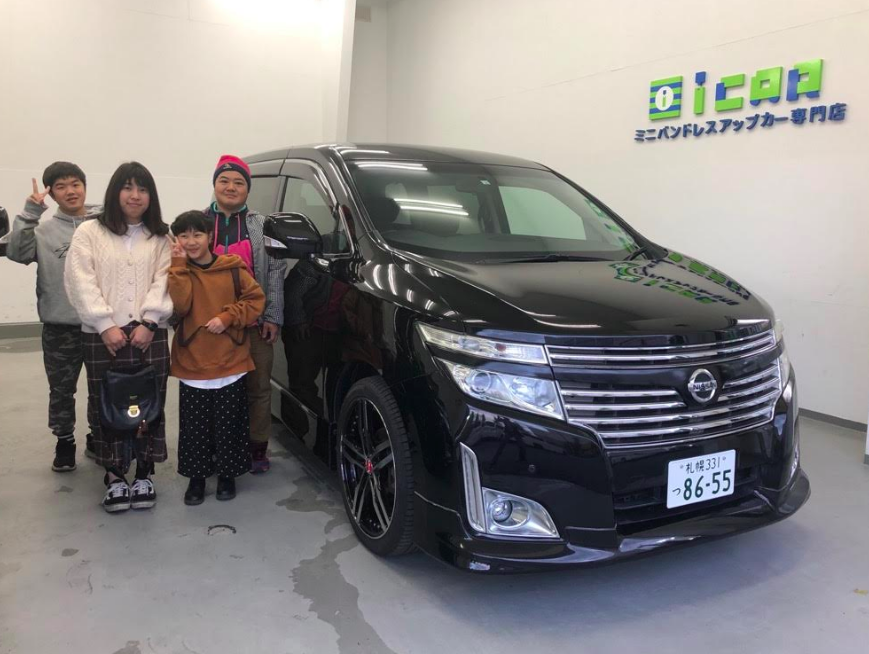恵庭市 N様 ニッサン エルグランド ハイウェイスター 順調に進み ご納車完了です! この度は数ある中古車販売店の中から当店を選んでいただき誠にありがとうございました。 エルグランドの豪華な内装に一目惚れしてご決断いただいたN様。 これからはエルグランドでご家族の楽しい思い出をたくさん作って下さいね。 車検などこれからのお付き合いもどうぞ宜しくお願いいたします。 N様 この度はありがとうございました!