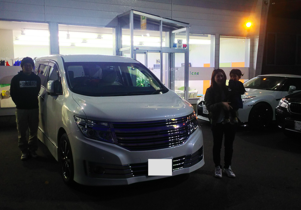 岩見沢市 Y様 ニッサン エルグランド ライダー 本日、無事にご納車です! この度は数ある中古車販売店の中から弊社にお任せいただき、誠にありがとうございました! 大きくなったお車で素敵なカーライフを送ってくださいね! この度は誠にありがとうございました!