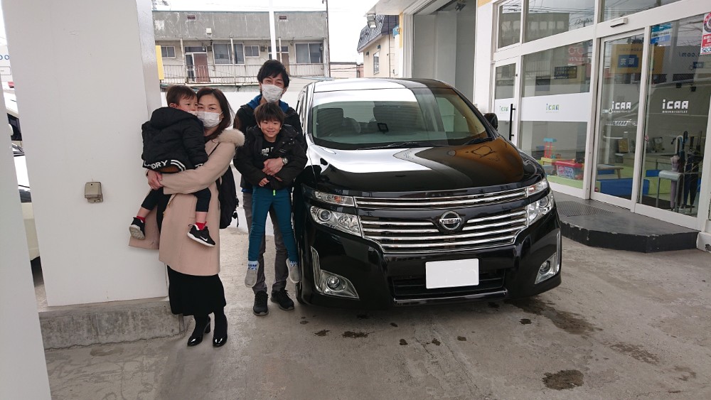 白石区 K様 ニッサン エルグランド ハイウェイスター この度は、数ある中古車販売店の中から当店を 選んでいただき誠にありがとうございます。 広くなりましたエルグランドでご旅行や 様々なアウトドアシーンで家族皆様と 素敵なカーライフをお楽しみください! また、何かの際には気軽にご連絡ください。 よろしくお願いいたします! ありがとうございました!
