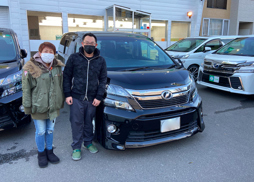 豊平区 W様 トヨタ ヴェルファイア2.4Zゴールデンアイズ 本日無事にご納車です! 白いお車から黒いお車に乗り替えられてまだ慣れないとは思いますが これから新しいお車で素敵なカーライフをお過ごし下さい。 今後とも末永いお付き合いの程、宜しくお願い致します。 W様 この度は誠にありがとうございました。